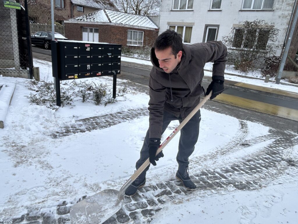 Wat ons opviel is dat heel wat plichtbewuste inwoners goed ingepakt met sjaal en muts het voetpad op gingen om de weg voor hun huis vrij te maken met een schop en zout.